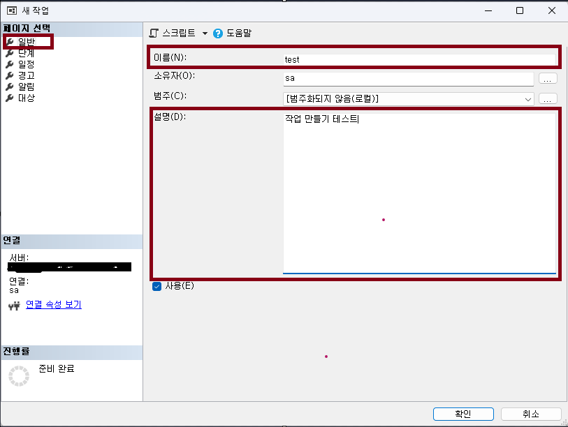 -> 일반 탭 -> 이름 (어떤 작업인지 네이밍 해주는거 본인이 식별할 수 있는 범위내로 아무거나 작성해도 무방)