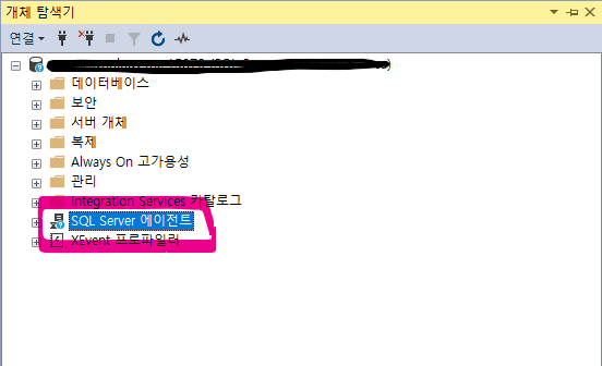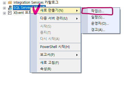 2. 개체 탐색기에서 SQL Server 에이전트 우클릭