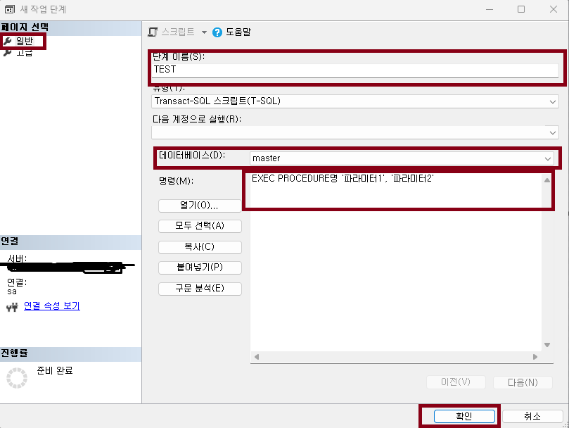 sa 계정으로 로그인 (다른 계정은 안될 거 같은데 잘 모르겠다..)
