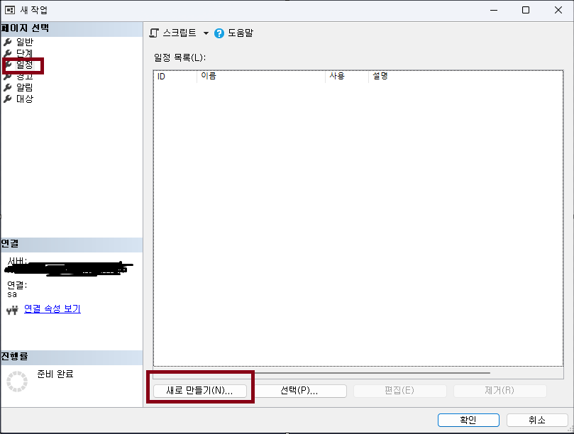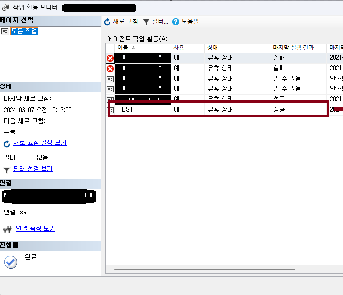 개체 탐색기 -> SQL Server 에이전트 -> 작업 -> 작업목록에서 내가 생성한 작업 확인
