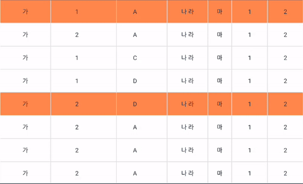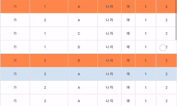 리스트뷰 구현한 뒤 특정 값이 있는 경우 구분 하기 위하여 해당 행 전부 색상 처리 하도록 하였다.