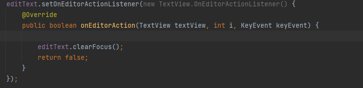 만약 true로 준다면 소프트키보드의 입력완료 키를 눌렸음에도 소프트 키보드는 사라지지 않는다.