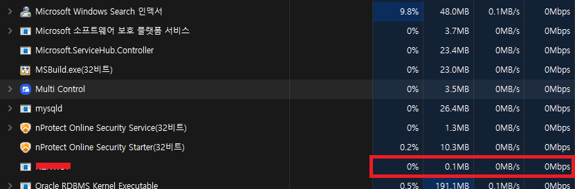 백그라운드에서 계속 실행 되고 있음이 확인 되었다.