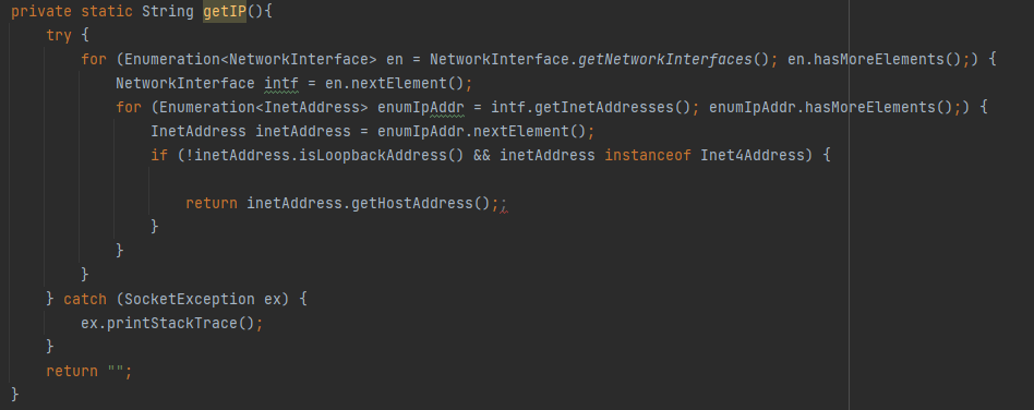 InetAddress inetAddress = enumIpAddr.nextElement();