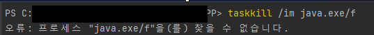 터미널 창에 테스크에 실행중인 실행파일 종료 명령문 작성 하면 된다는데