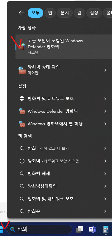 고급 보안이 함된 Windows Defender 방화벽 선택
