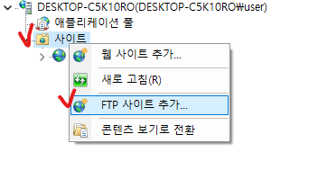 사이트 우클릭 -> FTP 사이트 추가 클릭