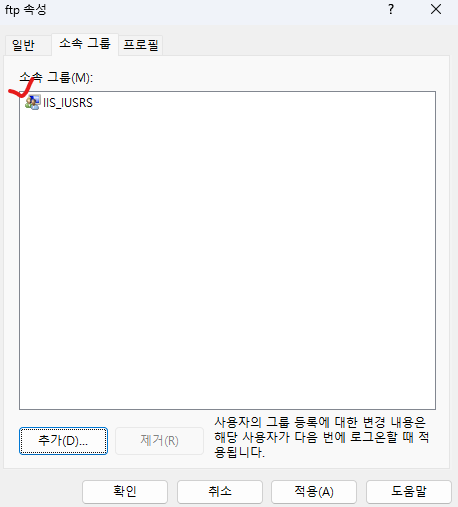 기존의 그룹은 삭제 하고 IIS 사용 그룹으로 전환
