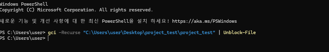 window 에서 Windows PowerShell 검색 후 관리자 권한으로 실행
